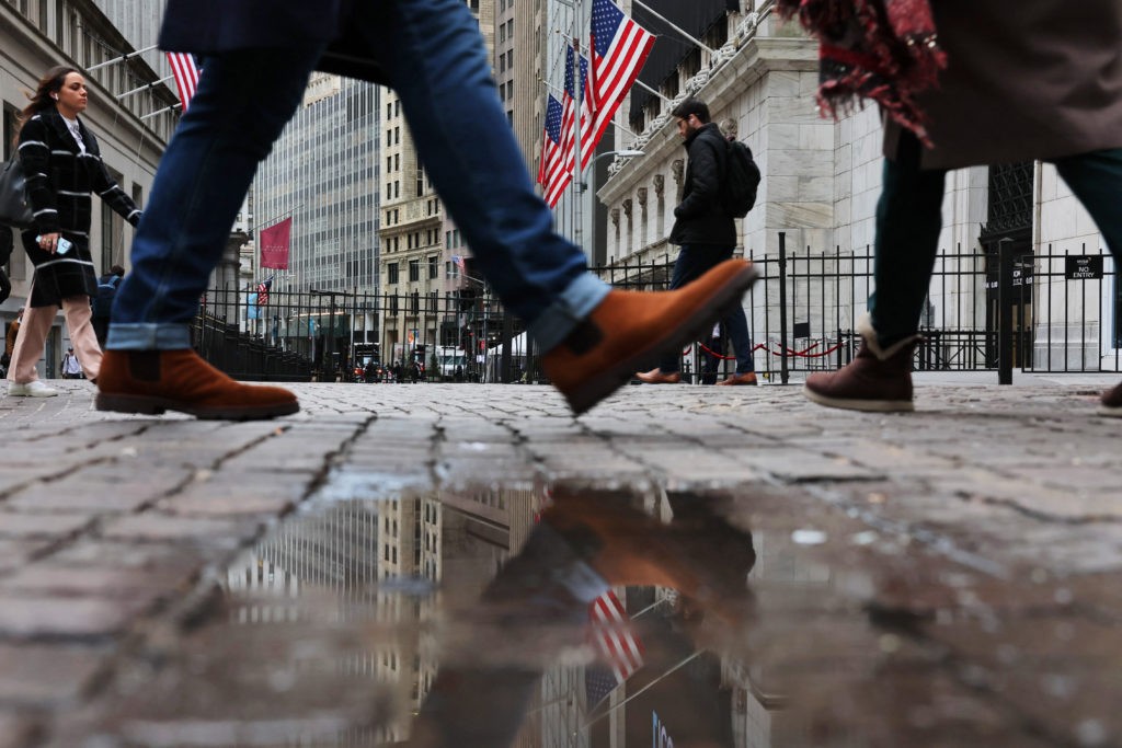 NEW YORK, NEW YORK – JANUARY 26: People walk past the New York Stock Exchange (NYSE) during morning trading on January 26, 2023 in New York City. The stock market opened slightly higher this morning as investors awaited the release of fourth-quarter Gross Domestic Product (GDP) report. The report showed that the economy grew at an annual rate of 2.9 percent in the fourth-quarter with the rate decreasing slightly from a 3.2 percent growth rate in the third quarter. Michael M. Santiago/Getty Images/AFP (Photo by Michael M. Santiago / GETTY IMAGES NORTH AMERICA / Getty Images via AFP)