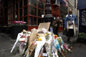 Fans pay tribute to late actor Matthew Perry outside “Friends” building on October 30, 2023 in New York City. John Lamparski/Getty Images/AFP (Photo by John Lamparski / GETTY IMAGES NORTH AMERICA / Getty Images via AFP)