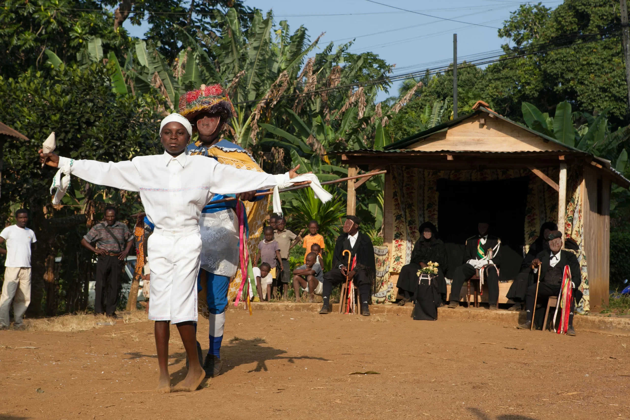“The story [of Tchiloli] revolves around a murder trial and involves about thirty actors. These actors represent different roles in the judicial system: the victim’s family, the emperor and his court, and various legal and public figures,” reads the documentation, with the main scene being “a public trial where the emperor’s son is accused of the crime,” “illustrating the value of equality before the law.”