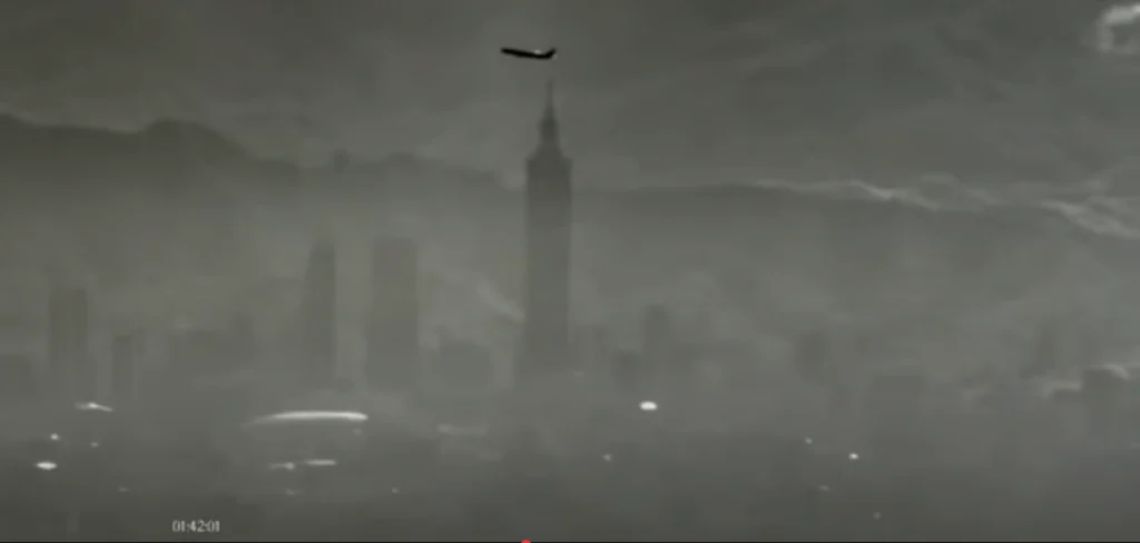 One 13-second video, released via the official “China Military” social media account, shows a drone’s aerial view of Taipei 101 and surrounding buildings. The footage also captures an aircraft passing through the frame, believed to be a civilian passenger plane departing from either Taoyuan International Airport or Taipei Songshan Airport.