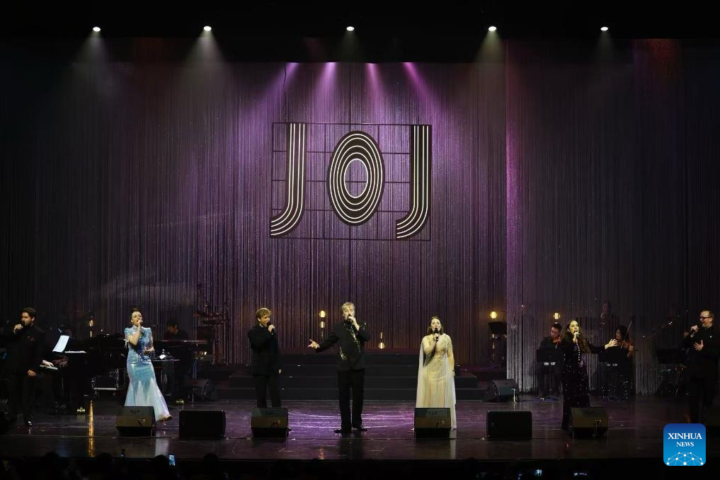 British musical actor John Owen-Jones (C) performs at the concert titled “Unmasked” at Hangzhou Golden Sands Lake Grand Theater in Hangzhou, east China’s Zhejiang Province, Jan. 15, 2026. (Hangzhou Golden Sands Lake Grand Theater/Handout via Xinhua)