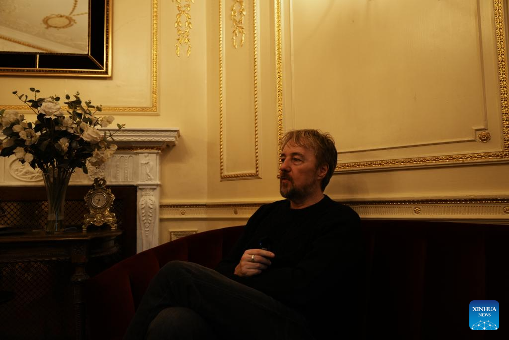 British musical actor John Owen-Jones receives an interview at His Majesty’s Theatre in central London, Britain, Dec. 22, 2025. (Xinhua/Zhao Jiasong)