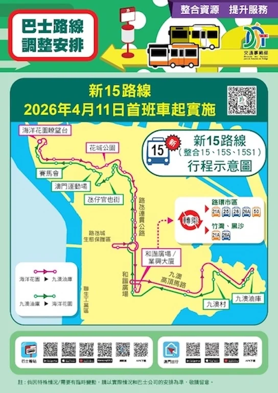 新15路線由原15、15S及15S1路線合併而成,往返海洋花 …