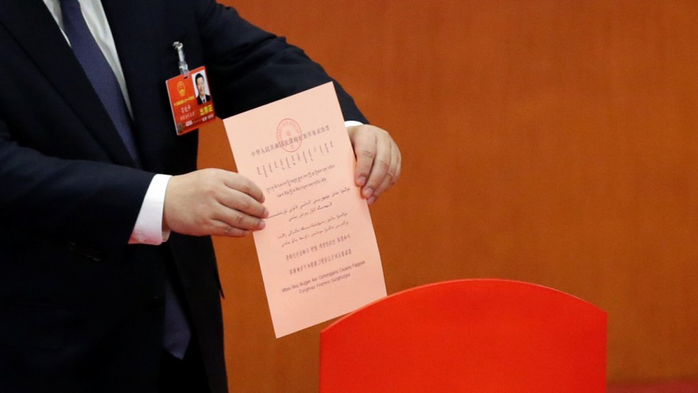 在掌聲熱烈和不設討論的情況下,全國人大正式通過由中共中央提出有關刪除國家主席任期限制的憲法修正案,2,964名人大代表當中只有2票反對、3票棄權。這個極為重要的草案在會議前夕公布,其中建議取消國家主席及副主席的任期限制,被視作是為正在第二個五年任期的國家主席習近平鋪平無限期執政的道路。