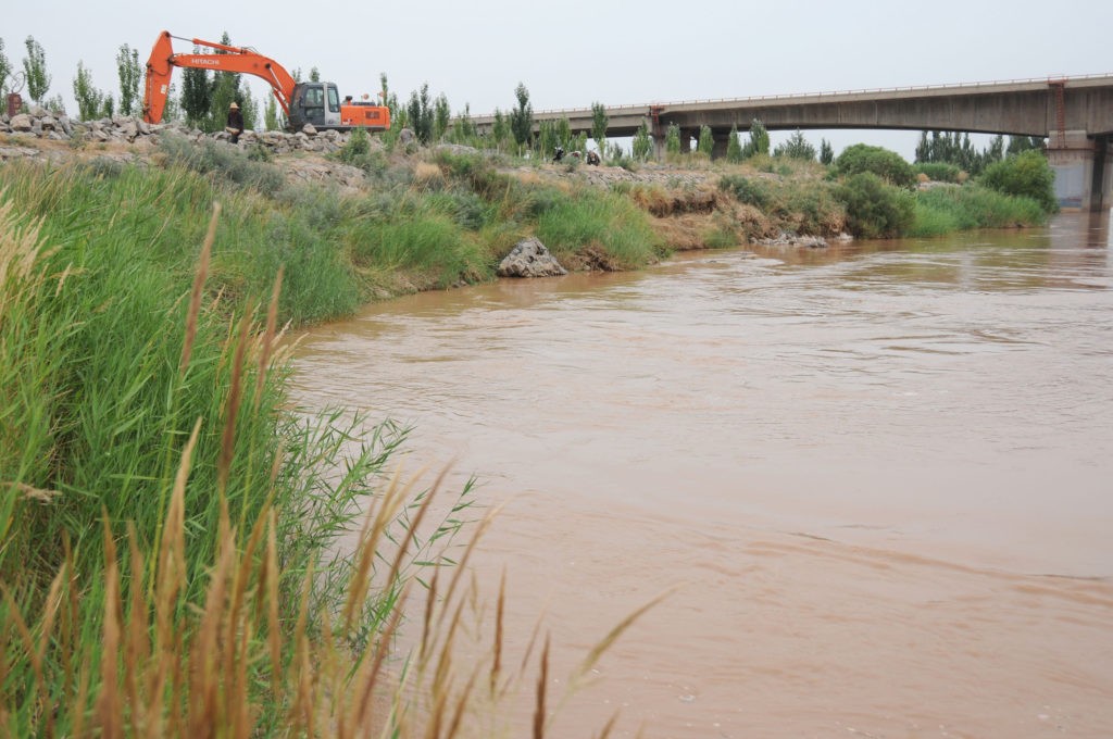 目前,黃河磴口段水流量為1760立方米/秒,南套子險工段衝淘塌陷180米,東地險工段衝淘塌陷2000米。