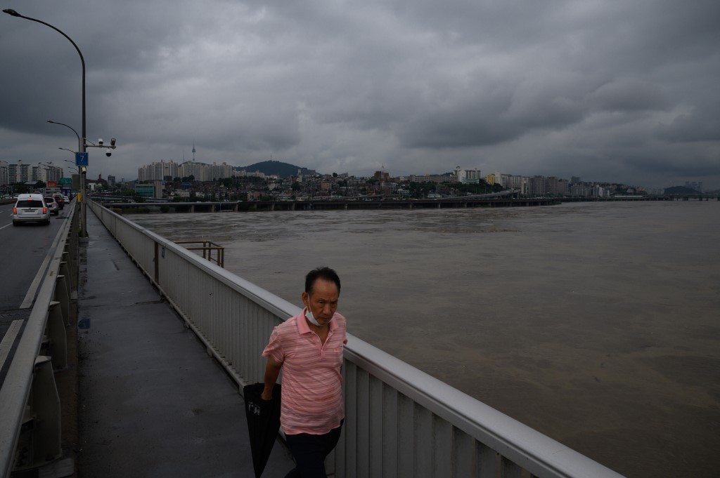 氣象部門指中部部分地區早上仍有每小時 100毫米暴雨,並伴有雷暴和閃電,京畿道和江原站部分地區則有 50毫米大雨。