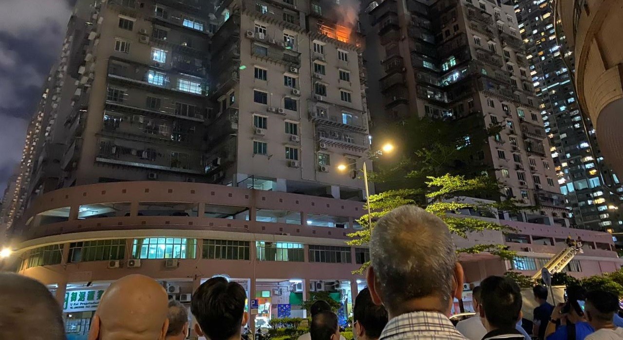 梁毓森表示,消防晚上 8時39分接報到場,以內攻及外面灑水 2種方式救火,雲梯車一度需時倒車至合適位置,火勢晚上 9時05分撲滅。他又稱,涉事大廈的消防供水系統正常,沒出現任何問題。