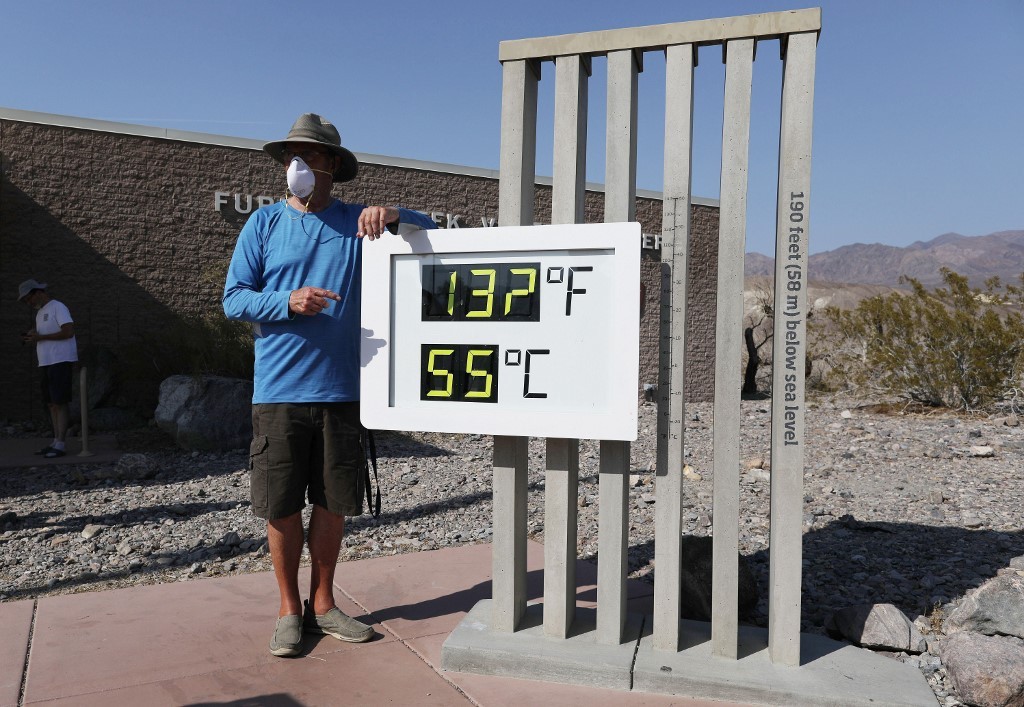 美國國家氣象局在加洲的死亡谷錄得史上最高溫華氏130度(攝氏54.4度),美國國家氣象局將進一步核實