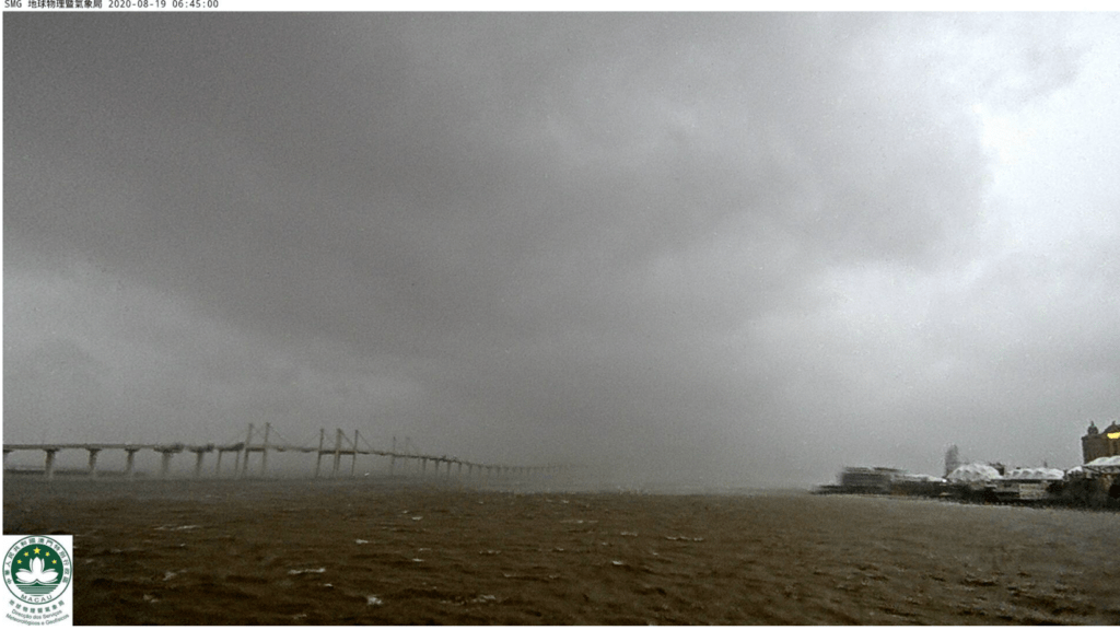 澳門氣象局改發8號東南風球。紅色風暴潮警告仍然生效,澳門低窪地區出現水浸,澳電發出警示,多個地區將於短時間內暫停供電。