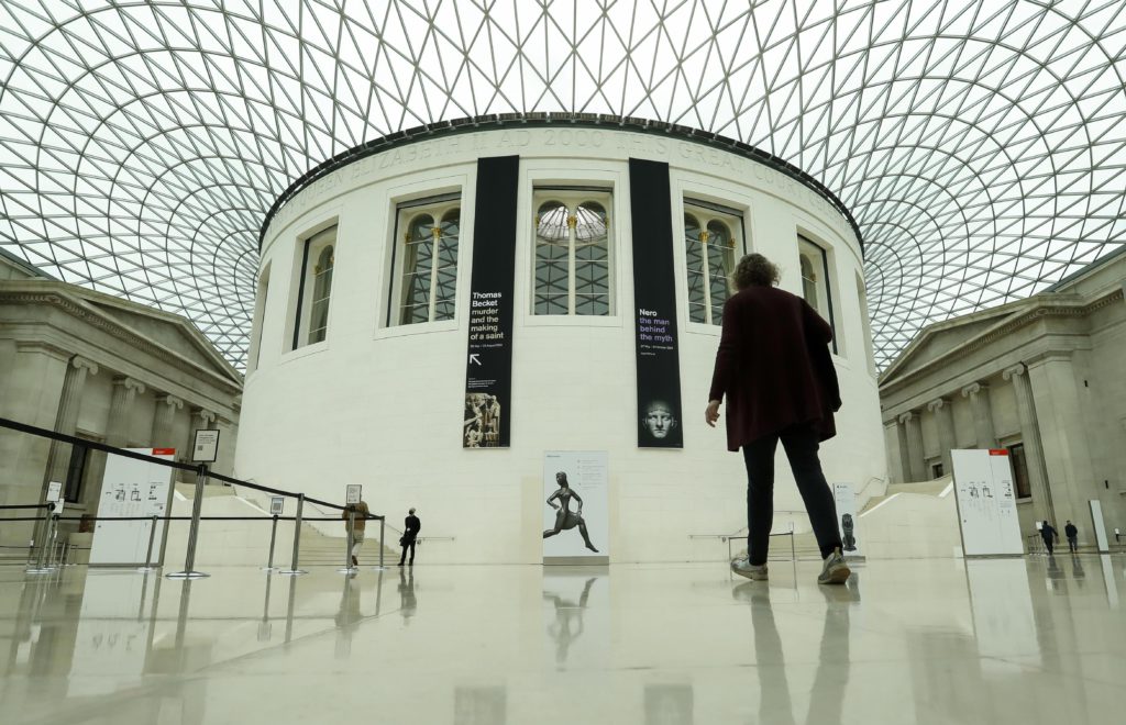 大英博物館也於17日重新開門迎客。工作人員介紹說,如今博物館每天分多個時段開放,每個時段僅允許100人入場。雖然近期的參觀時段都已預訂一空,但參觀人數也遠低於疫情前的平均每天2萬人。