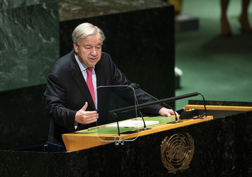 (圖:聯合國秘書長古特雷斯在第76屆聯合國大會一般性辯論開幕式上致辭。新華社)