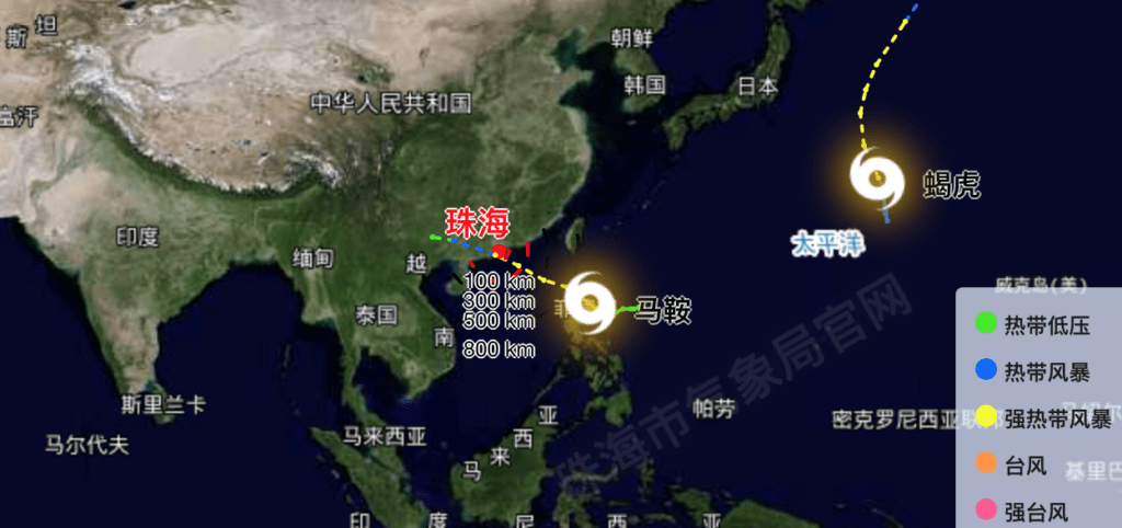珠海市氣象台預計,強熱帶風暴「馬鞍」將為珠海市帶來嚴重風雨影響,呼籲做好防風防雨,並發報藍色颱風預警及高溫黃色預警。