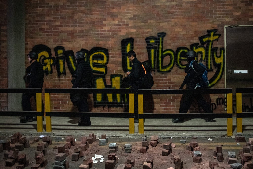 2019年理工大學發生示威者與警方衝突期間,警方在佐敦拘捕多人,其中10名男女被控以暴動、在公眾地方管有攻擊性武器等罪,當中2人早前已認罪,另外8人要經審訊,區域法院今日裁定7人罪成,1人罪名不成立。