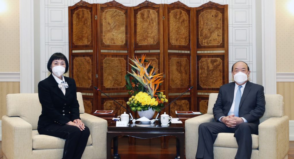 行政長官賀一誠在政府總部會見澳門國際品牌企業商會主席蕭婉儀一行。