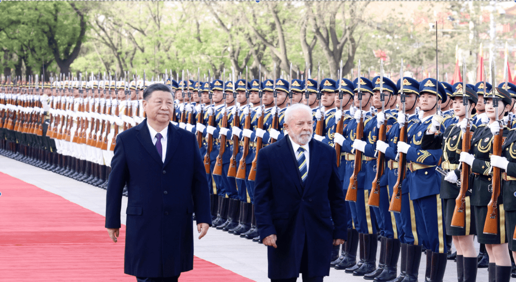 本週五中國國家主席習近平在北京人民大會堂東門外廣場舉行儀式,歡迎巴西總統盧拉對中國進行國事訪問。兩人之後會在人民大會堂舉行會談。