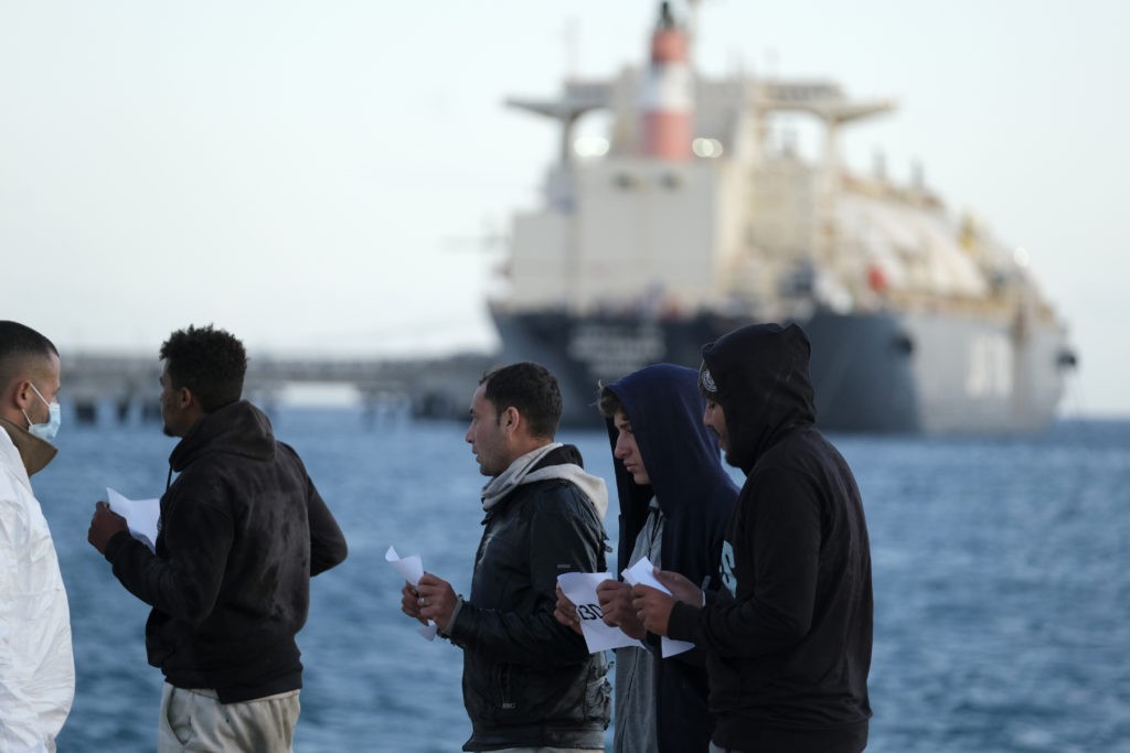 約60名非法移民在馬耳他海域獲救 於昨(17)日,獲救非法移民在馬耳他南部港口馬爾薩什洛克手持號碼紙接受登記。