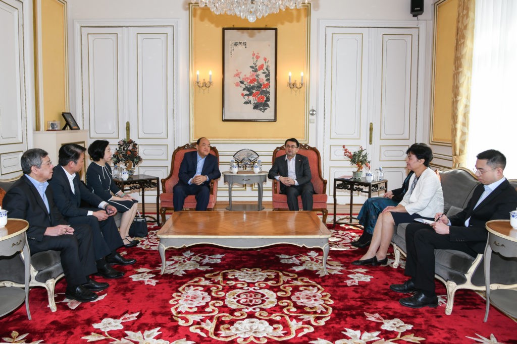 賀一誠在盧森堡市與中國駐盧森堡大使華寧會面,雙方就持續加強澳門與盧森堡兩地的合作,以及在現代金融、會展旅遊等方面開拓新的合作空間和機遇等議題交換意見。