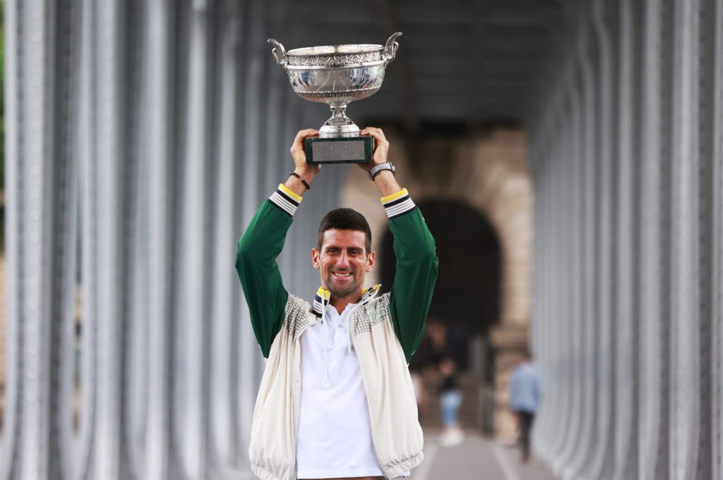 6月12日,焦科維奇在巴黎比爾哈克姆橋捧杯留影。