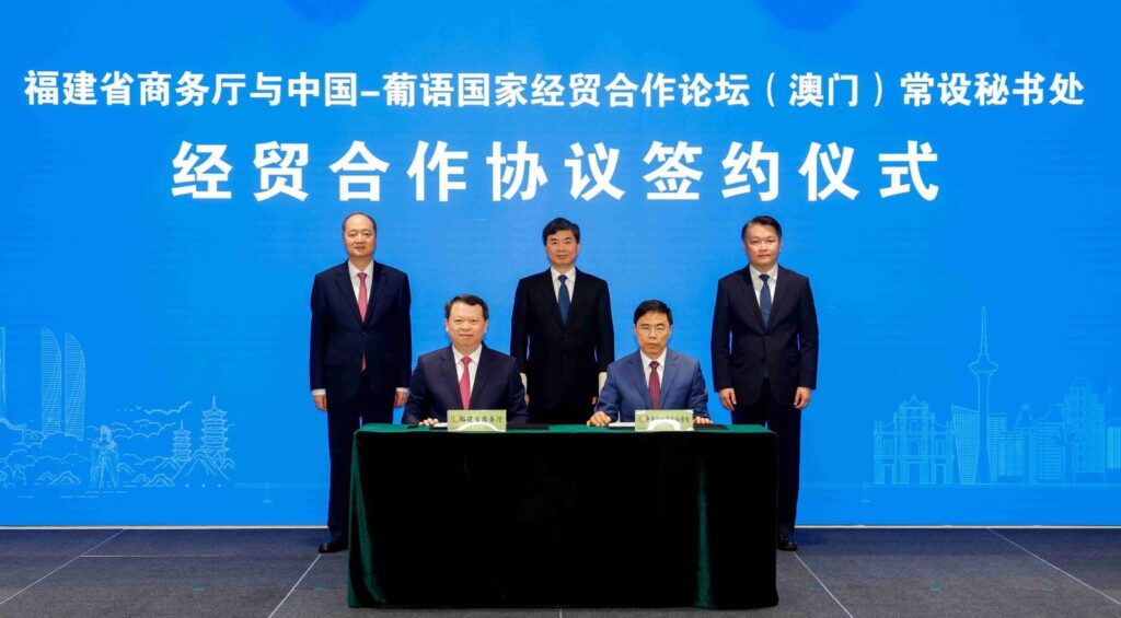 中葡論壇(澳門)常設秘書處29日與福建省商務廳簽署了《中葡經貿合作論壇(澳門)秘書處與福建省商務廳關於加強經貿合作的協議》,加強雙方在雙向貿易、投資、產能合作,促進福建省、葡語國家、澳門的經貿合作和共同發展。