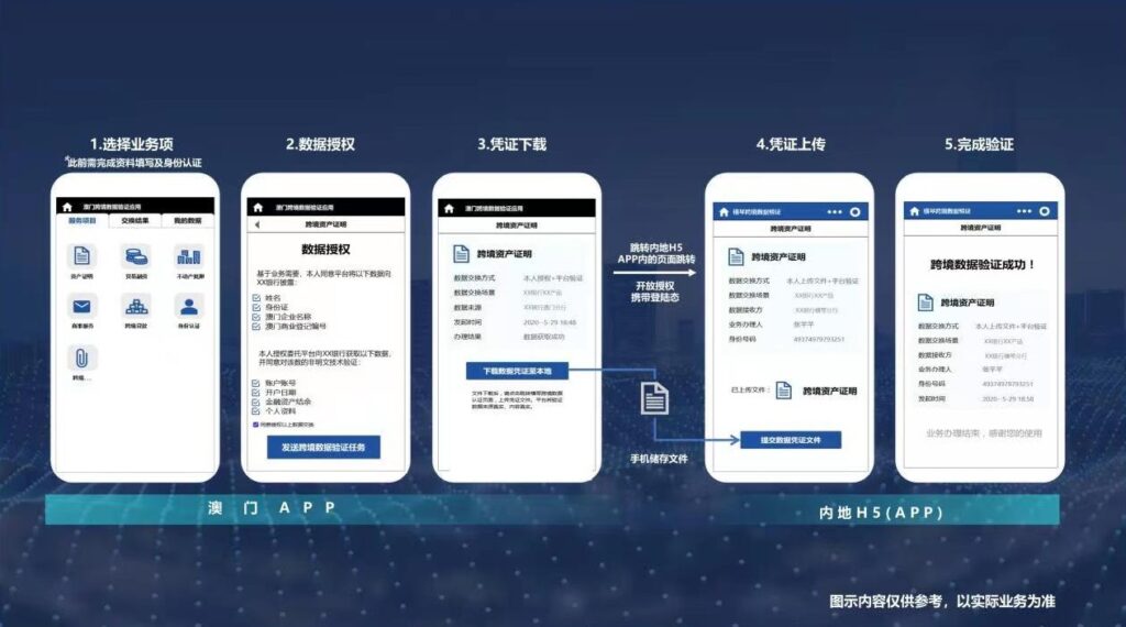 據橫琴粵澳深度合作區金融發展局介紹,粵澳跨境數據驗證平台是為提高粵澳兩地機構跨境數據驗證的效率而建立的基礎設施。在過去,澳門居民在橫琴申請信貸業務跨境驗證的相關業務時,需填報數據委託書等系列資料,數據材料在粵澳兩地流轉多個環節後才能返回申請機構進行真實性驗證處理,過程需要多日才能完成。現時澳門居民在工商和建設等銀行的橫琴分行使用手機銀行 App「掌上辦」「即時辦」申請,5分鐘就可申請澳門資產證明相關資料。