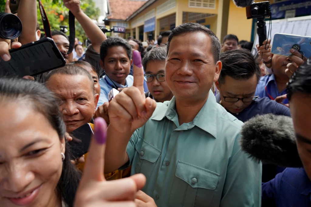柬埔寨選委會日前公布大選結果,執政人民黨以絕對優勢贏得大選,取得國會125個議席當中的120個。洪森早前說,不會再擔任首相,由兒子洪瑪奈領導新政府。