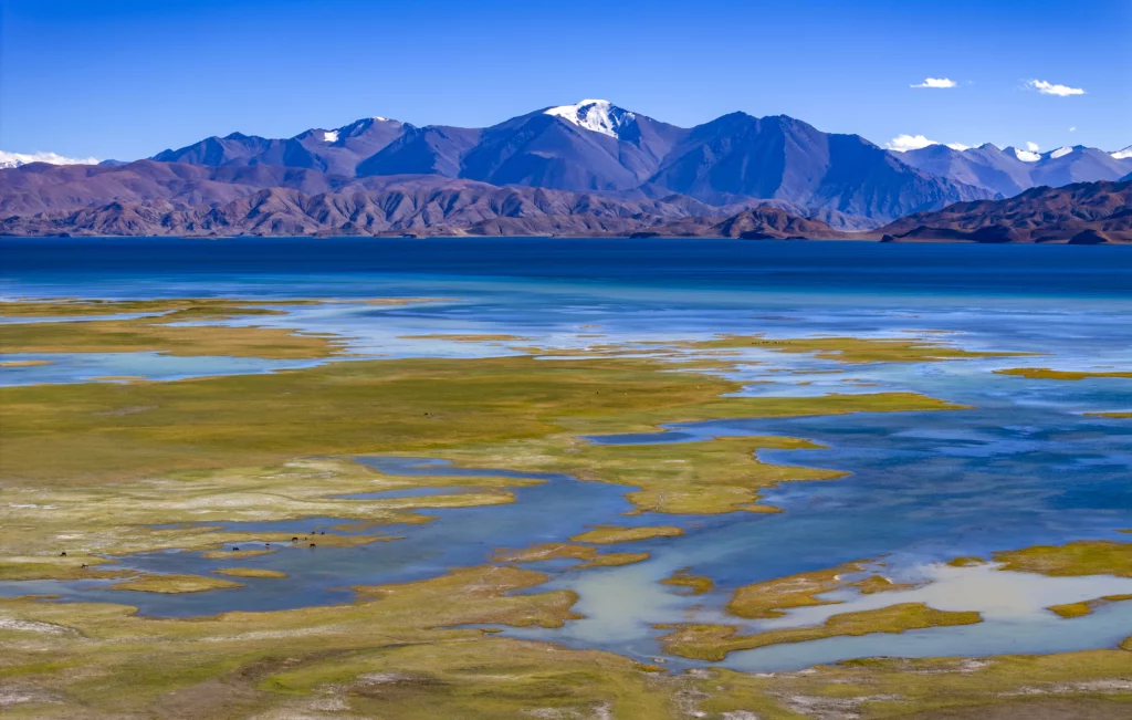 班公湖位於西藏阿里地區日土縣西部,湖面平均海拔4200米。它的奇特之處在於,由東向西水中含鹽量遞增,湖水在陽光下呈現墨綠、淡綠和深藍等不同的顏色。這裡碧波蕩漾,水草豐美,是名副其實的西陲明珠。