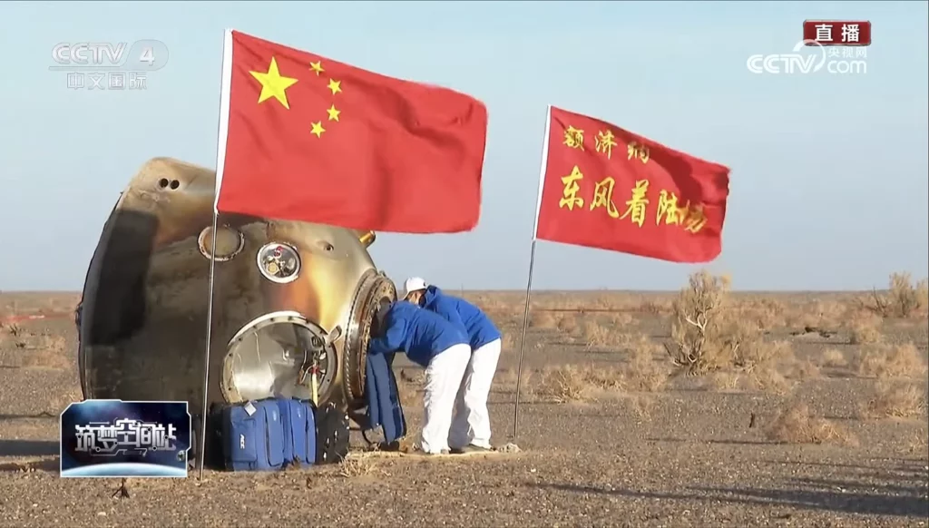 神舟十六號飛船昨晚與空間站組合體分離,飛船返回艙與推進艙今日早上7時49分分離,返回艙穿過大氣層後,主傘打開,於上午8時12分在東風着陸場成功着陸。