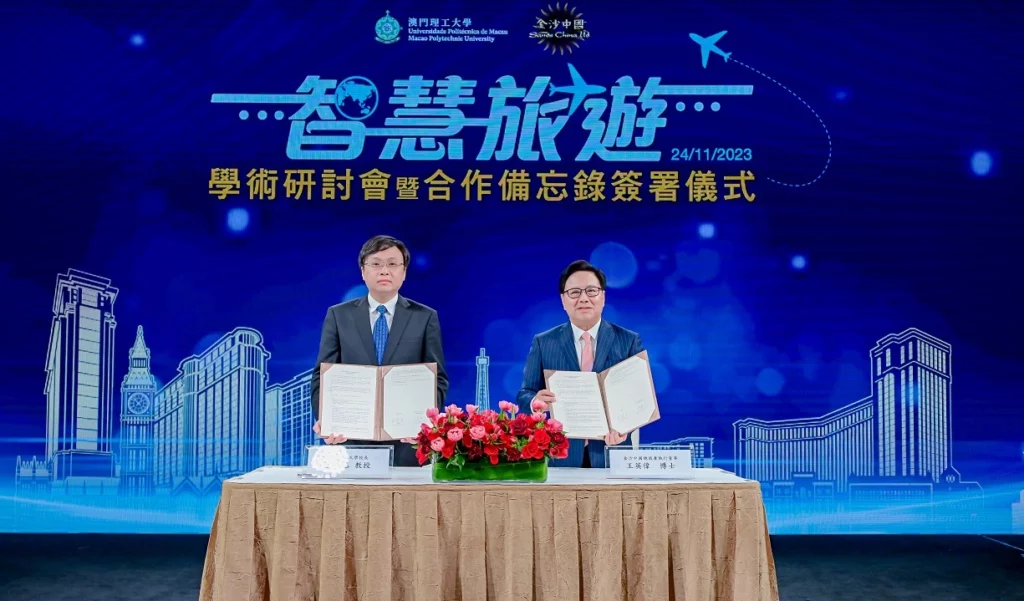 金沙中國有限公司與澳門理工大學24日在澳門倫敦人合辦智慧旅遊學術研討會,並於會上簽署合作備忘錄,同場即席演示澳門綜合旅遊休閒企業首個人工智能範疇的校企合作項目。