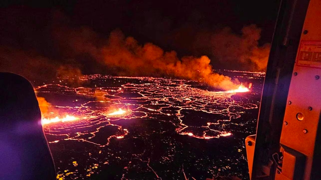 冰島氣象局在當地18日晚表示,位於雷克雅內斯半島,格林達維克鎮東北約三公里的海爾加費德火山,於當地時間星期一晚上10時17分開始爆發。在爆發前一小時該地區曾發生地震,當地應急部門表示火山出現一條長約3.5公里的裂縫,並一直延伸至首都雷克雅未克西南約40公里處。火山每秒噴出約100至200立方米的熔岩,可能是該地區最大型的一次火山爆發。