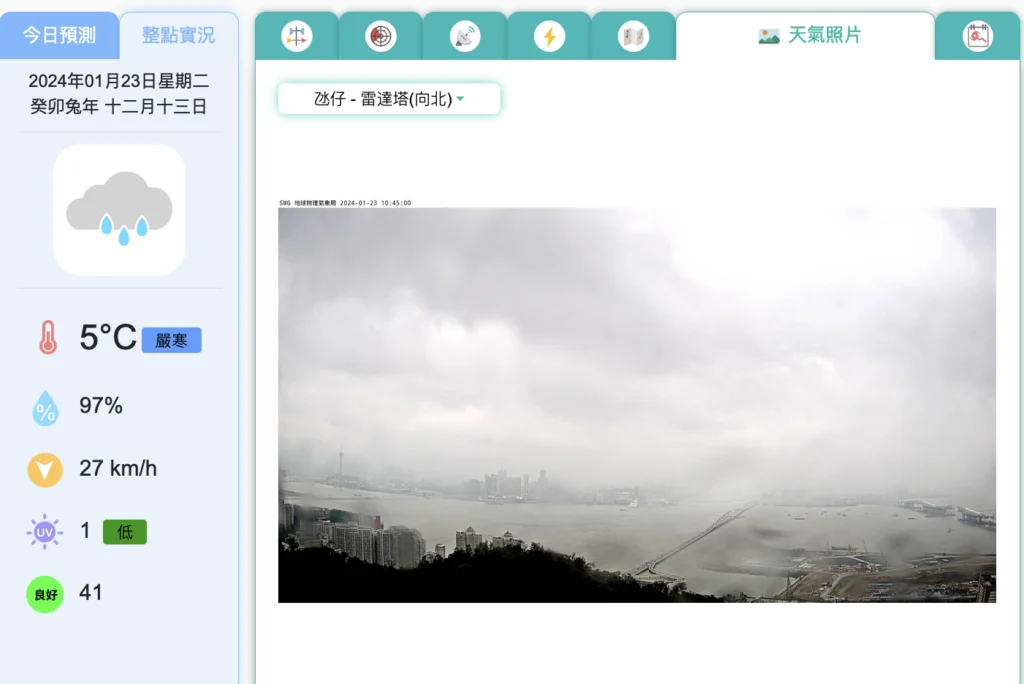 135 氣象局指橙色低溫仍然生效,預料本澳今明兩日天氣非常寒冷。氣溫約為攝氏5至9度。 相對濕度介乎百分之60至99之間。 另請閱讀 澳門取消葡萄牙居留優惠政策惹議 賀一誠呼籲中文媒體引領對澳琴新動向和成就深入了解