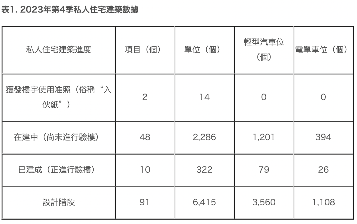 2023年度內,新申請審批的私人住宅項目共可提供110個單位,而新動工的私人住宅項目則共可提供437個單位。此外,新申請驗樓的私人住宅項目可提供369個單位,新發出使用准照的私人住宅項目可提供183個單位。已建成的酒店項目則共有7個,提供了1,792間客房。
