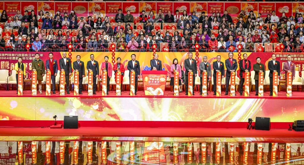 是次花車匯演以「慶祝澳門特別行政區成立25周年 2024年農曆新年花車匯演 騰龍運鑽歡樂春節」為題,合共15輛花車及來自海內外約1,000位表演者參與是次匯演。 花車匯演由西灣湖廣場起步,巡遊路線延伸至澳門漁人碼頭, 並邀請多位港澳藝人助慶和主持。行政長官賀一誠伉儷亦有出席觀看。