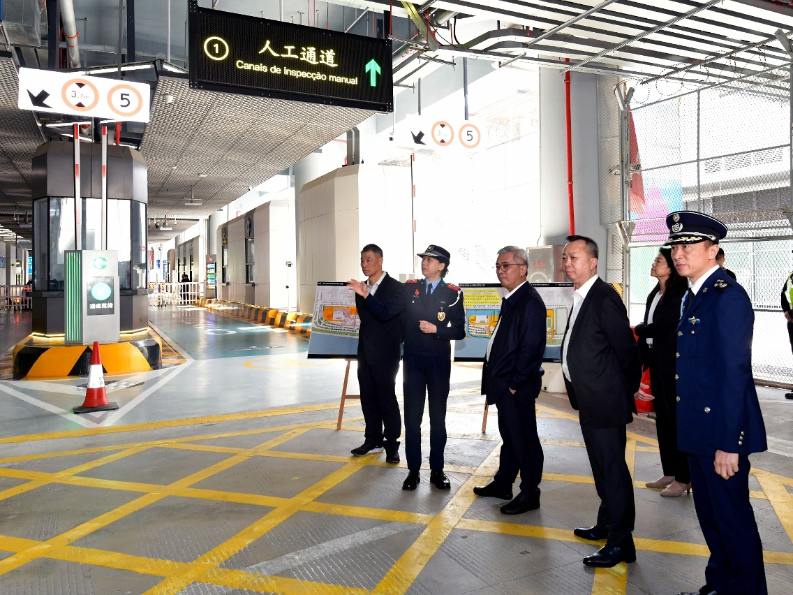 保安司司長黃少澤先後到關閘、港珠澳大橋及橫琴口岸澳門口岸區出入境事務站,以及海關查驗區,視察各口岸通關、出入境車道運作、分流和便民措施的安排及關檢運作情況,期間,保安司司長與內地邊檢及海關領導進行工作交流,並互致新春祝福。接著前往司法警察局報案及緊急行動中心,了解春節期間案件接收及偵查情況,黃司長指示所有人員需時刻保持警惕,加強防範及打擊各類不法行為,嚴防不法分子於新春期間伺機犯案。