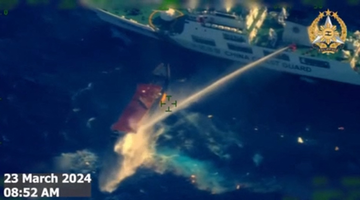 中國海警船周六(23日)在仁愛暗沙(Second Thomas Shoal)使用高壓水炮攻擊一艘為駐紮當地菲國部隊運送補給的民用船隻,造成船身損毀及船員受傷。