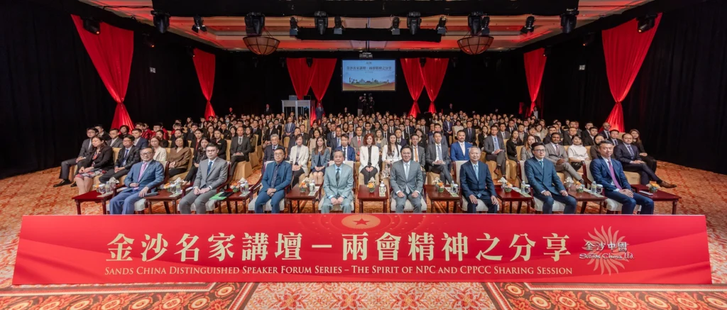 「金沙名家講壇-『兩會』精神之分享」是金沙中國員工職業素養培訓系列活動之一,旨在讓團隊成員深入了解並把握國家發展帶來的機遇,助力推動澳門發展成為世界旅遊休閒中心。