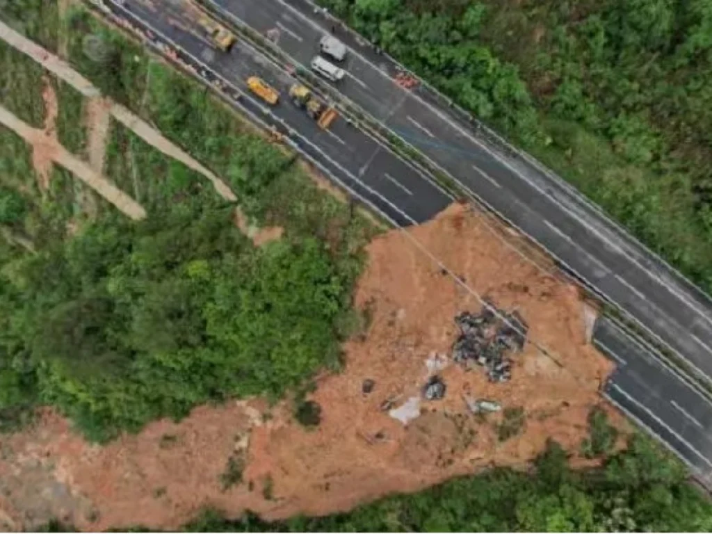 公路塌方路面位於茶陽路段,長約17.9米,面積約184.3平方米。