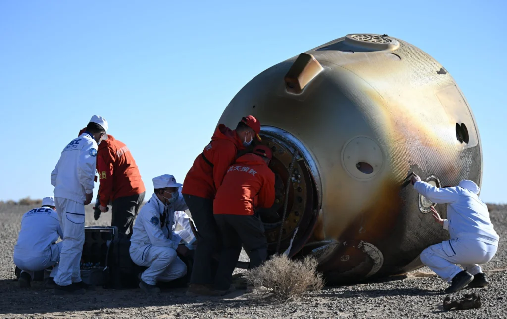 擔負搜救回收任務的搜救分隊,及時發現目標並抵達著陸現場。返回艙艙門打開後,醫監醫保人員確認太空人身體健康。