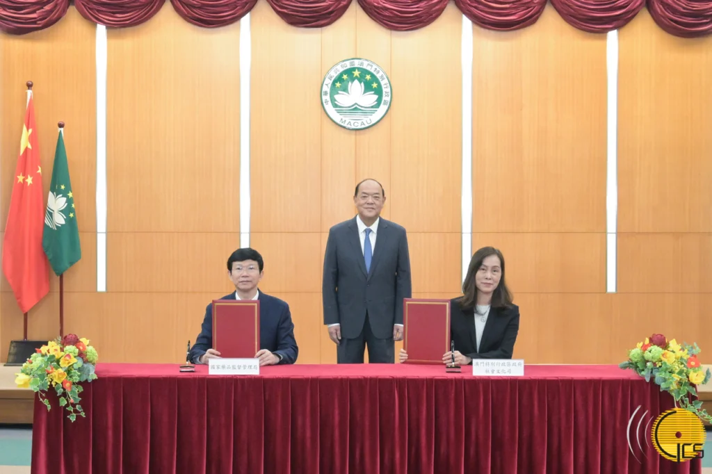 《國家藥品監督管理局與澳門特別行政區政府社會文化司關於藥品、醫療器械和化妝品監管合作協議》由行政長官賀一誠見證,並由社會文化司司長歐陽瑜、國家藥品監督管理局局長李利昨(7日)在政府總部簽署。