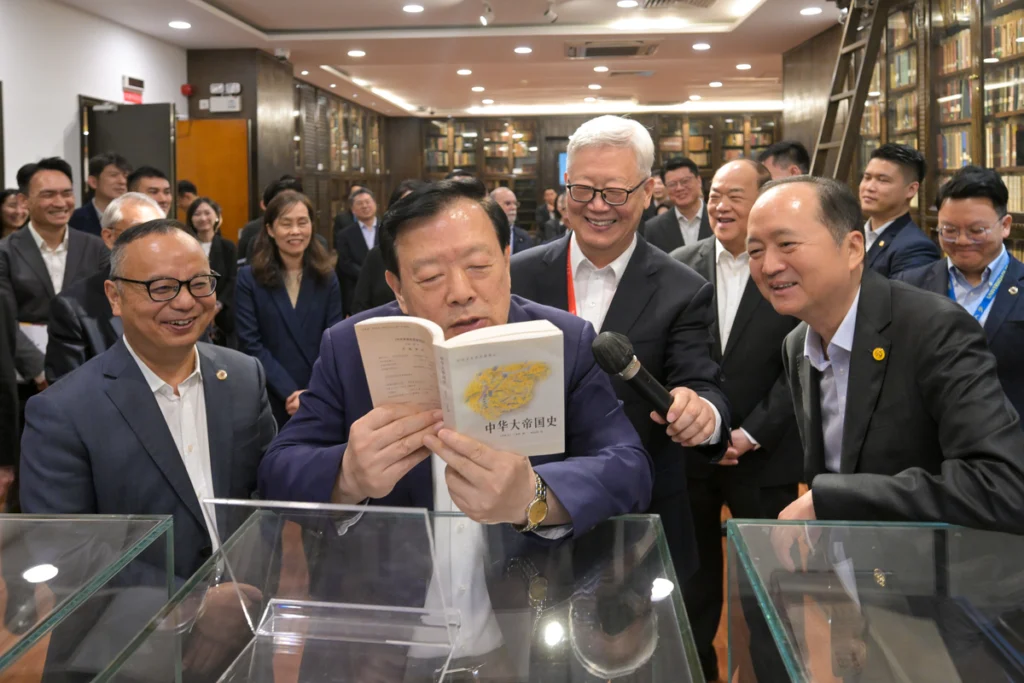 夏寶龍緊接到訪澳門大學,考察中藥質量研究國家重點實驗室及科研項目,並參觀澳大圖書館內的古籍館。