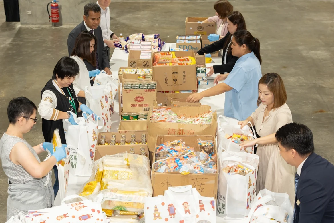 金沙中國周二於澳門威尼斯人金光會展舉行開幕儀式,為「金沙關懷食物福袋製作活動」揭開序幕。主禮嘉賓包括澳門特別行政區政府社會工作局副局長鄧玉華、潘志明,以及金沙中國一眾管理層成員。
