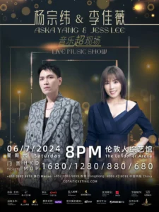 楊宗緯與李佳薇將在倫敦人綜藝館帶來一場超級唱將的音樂盛宴!《洋蔥》、《涼涼》、《煎熬》、《忍不住想念》……兩位實力歌手將用他們深情的歌聲,再次唱響這些觸動人心深處的經典歌曲,觸動現場每一位歌迷的心!