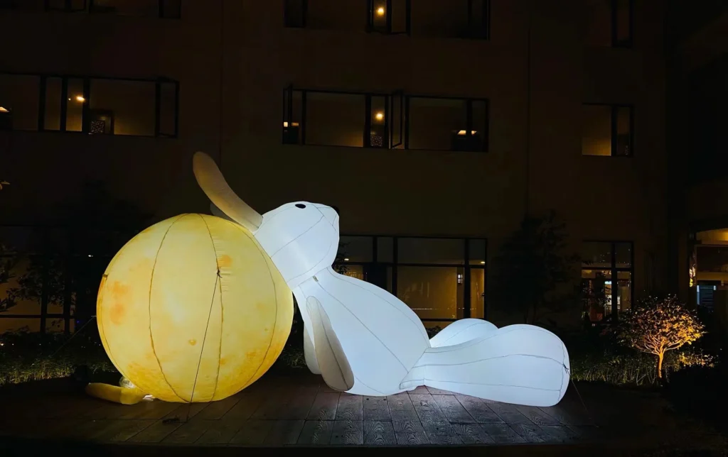 隨著越來越多人入住新街坊,項目商舖陸續開業,配套學校亦已經開學,社區內的人氣、商氣、煙火氣不斷提升。為增添節日氣氛,大型月球裝置和玉兔來到新街坊蓮花廣場,和街坊共度中秋,寓意「人月兩團圓」。現場另設多組國潮風的中秋燈光裝置,凡於活動當日在現場打卡,分享至指定社交媒體並設置公開狀態,集齊指定數量的點讚後即可領取禮品。