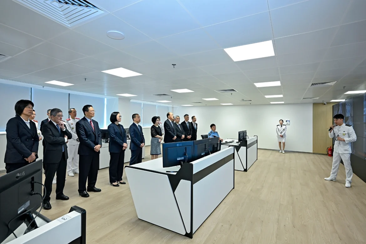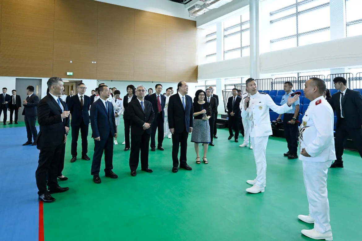 揭幕儀式後,一眾嘉賓參觀了大樓的多項設施及訓練場地,了解行動通訊中心及全澳城市電子監察系統設備室的運作模式,亦到模擬訓練場觀看實地演練,以及到體育館和器械訓練室等運動設施進行視察。