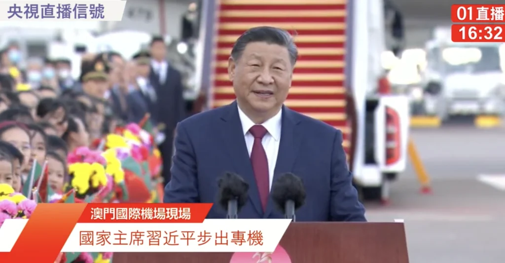 國家主席習近平與夫人彭麗媛於12月18日下午抵達澳門,開始為期三天的視察行程,並出席澳門回歸慶祝活動。