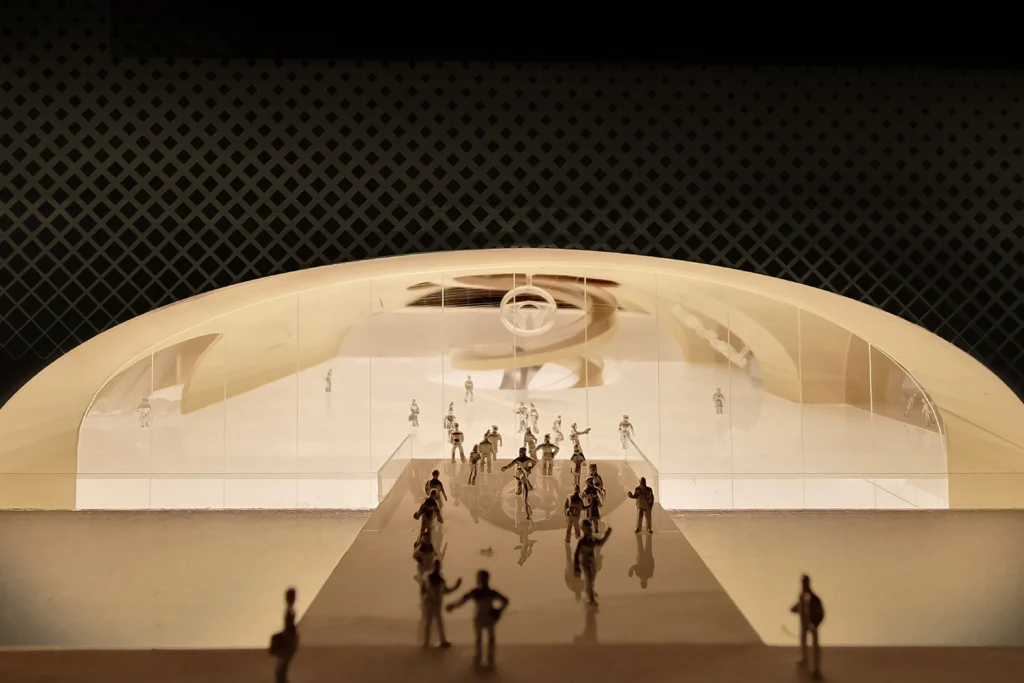 據徐昀超介紹,設計旨在凝聚社區,三個拱門分別通向不同空間:圖書、閱覽、文化演藝中心。圖書中心靈感來自赫爾辛基中央圖書館,將成為公共的活動空間;演藝中心將作為表演藝術核心;設有天窗的閱覽中心將舉辦藝術和科學展覽。
