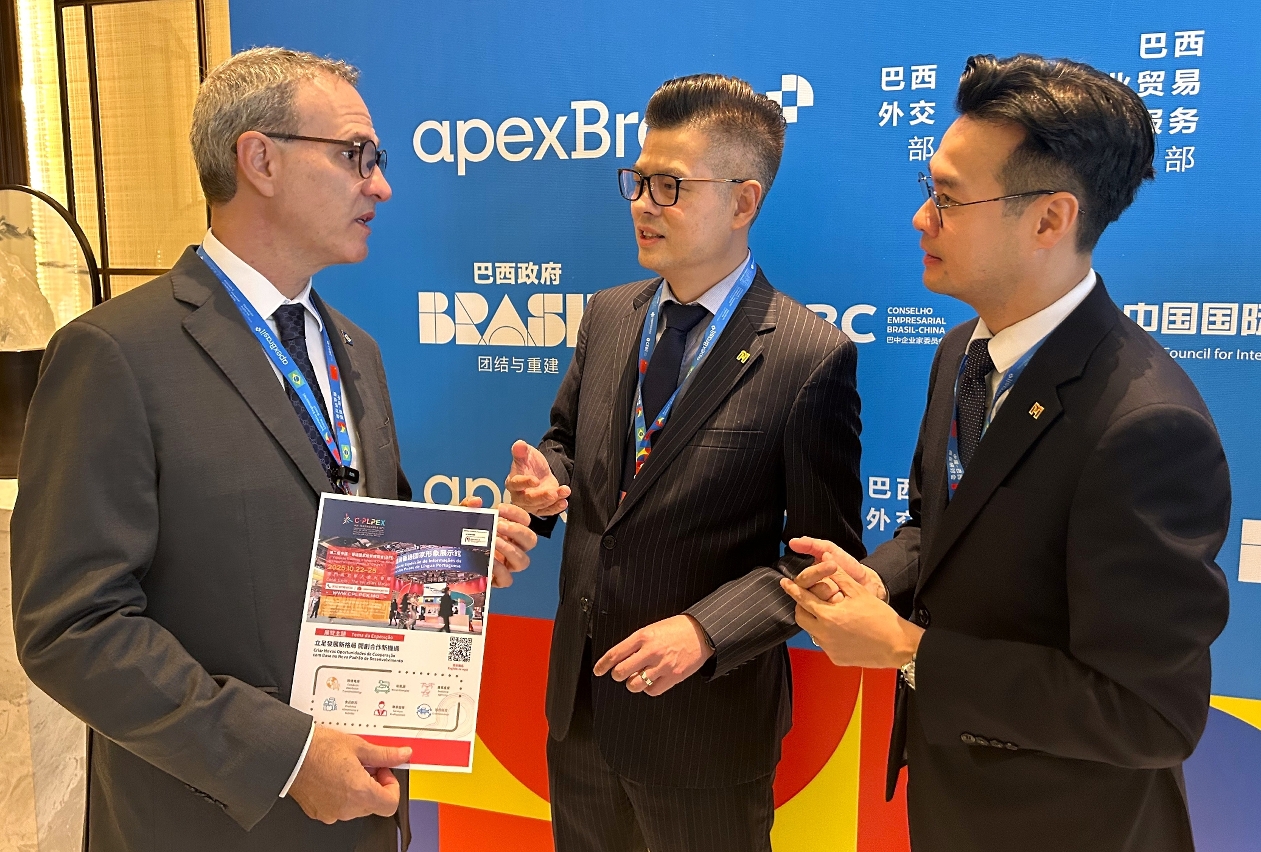 澳門招商局藉參與是次高規格經貿活動的契機,向多位中巴與會代表,包括巴西多個經貿部門、肉類領頭企業、中國頭部咖啡品牌企業等,推廣澳門中葡平台的角色和優勢,介紹10月將於澳門舉辦的「第二屆中國—葡語國家經貿博覽會(澳門)(2.ª C-PLPEX)」和「中葡商貿導航」服務如何助力企業拓展市場,以吸引企業用好澳門國際窗口和招商局中葡經貿資源,推動中國內地企業藉澳門作為平台「走出去」,並將巴西資源「引進來」,為區域經貿發展注入動能。