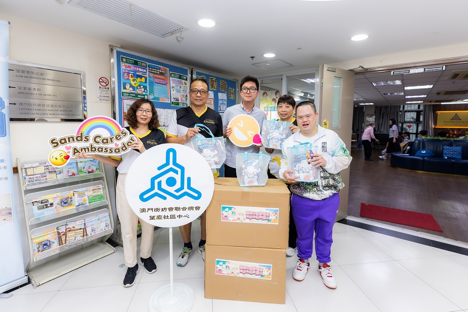 本次送出的禮物包是由金沙中國購自澳門扶康會,包含繪畫用具、零食及由中心學員親手製作的手機支架,意義非凡。