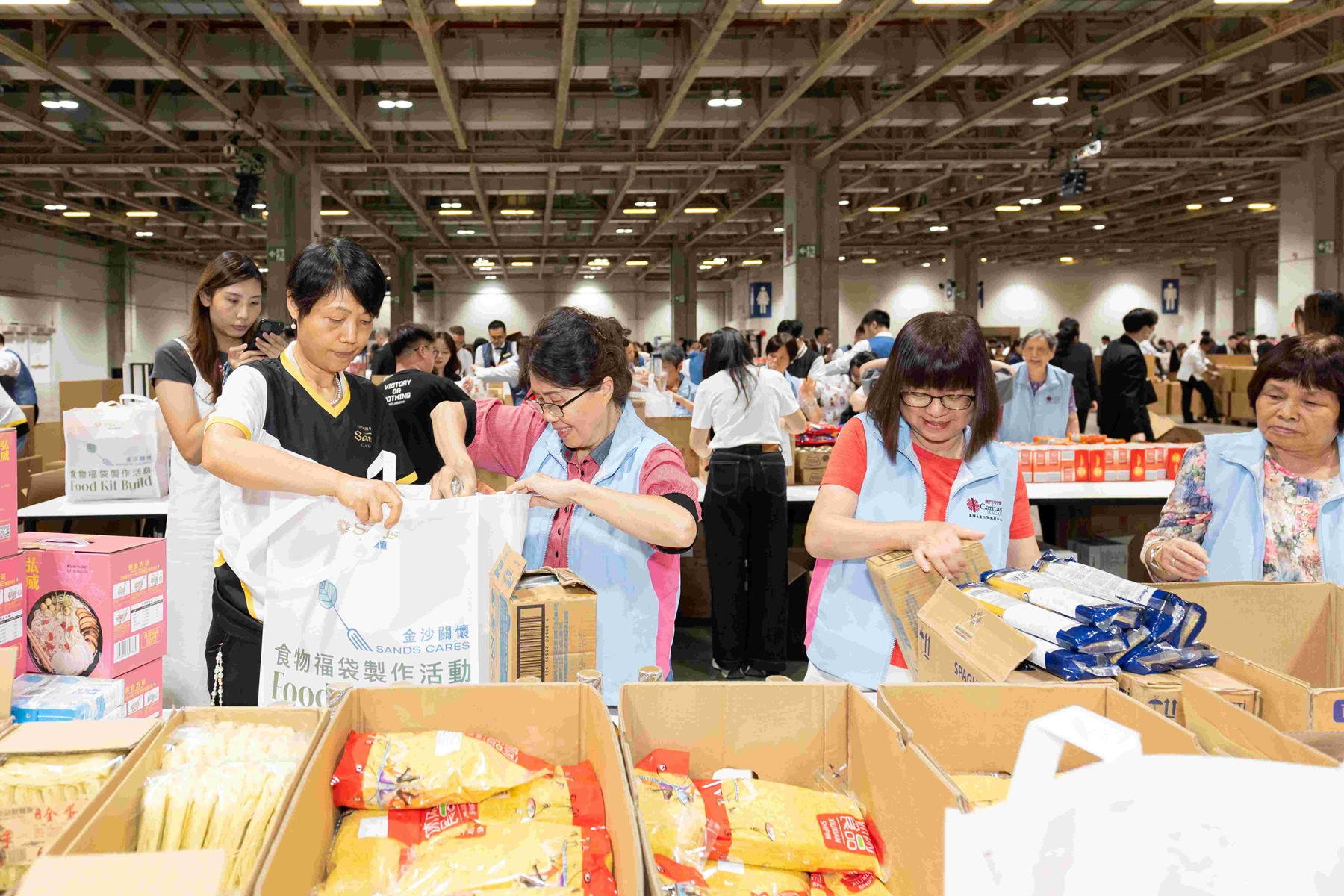 金沙中國於6月25日舉辦集團年度全球志願活動──「金沙關懷食物福袋製作活動」,吸引逾300名公司團隊成員、明愛長者義工及澳門理工大學學生齊聚澳門威尼斯人金光會展,合力製作3,000個食物福袋。該年度活動於集團旗下位於澳門及新加坡的綜合度假村進行,旨在向有需要人士提供糧食援助。(圖片:金沙中國)