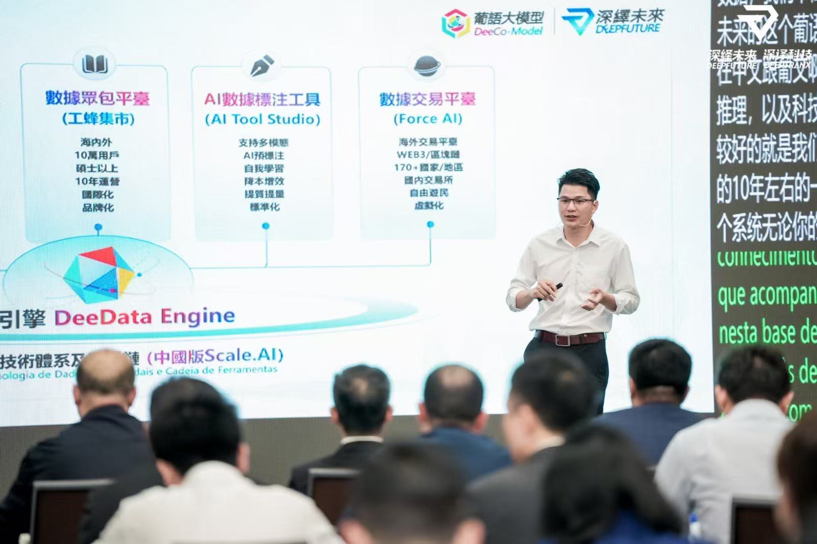 林余楚 – 「深繹未來葡語大模型」作為中國首個針對葡語國家市場的行業級大模型,具備多方面的獨特優勢。首先,在技術架構上,它基於「多語言、多模態、多領域」體系,支援文本、語音、圖片、影片共4種模態數據,並能處理商貿、金融、科技、文化等17個領域的內容,這種領域聚焦性是許多通用大模型所不具備的。其次,在語言處理能力方面,該模型融合了中葡、英葡平行語料對齊技術,對歐葡和巴葡的語言結構理解更為深入,能夠精準適配全球化下不同葡語變體地區的需求。最後,該模型具備輕量化部署能力,透過模型壓縮技術實現高效部署,使其擁有行業專家級的能力,並能在各類終端設備上流暢運行,提供便捷的服務。
