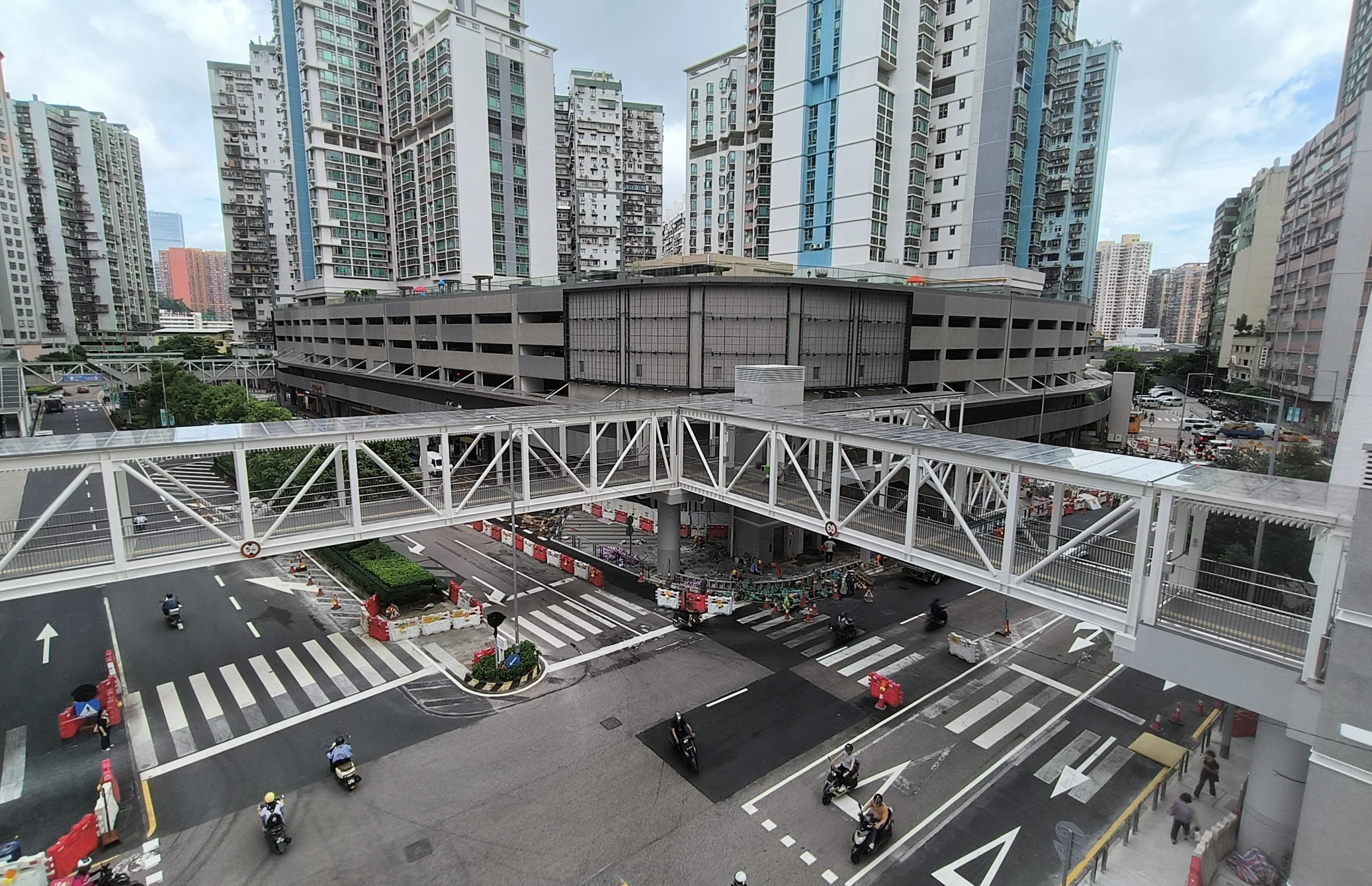 另一方面,沙梨頭北街與俾若翰街交界處的另一組行人天橋工程也在積極推進。因應鄰近學校,相關單位協調於暑假期間完成前期管線遷移及街渠接駁等工作,工程範圍外的泊車位將於開學前恢復使用。同時,為方便居民出行及商戶營運,聖瑪大肋納學校門口一側行人道已被擴闊,並於俾若翰街近宏開大廈路段增設臨時上落客貨區。天橋樁基礎工程預計九月展開,整體工程目標於2026年下半年竣工。